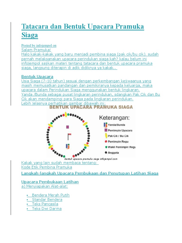 Apa bentuk upacara siaga. Bentuk barisan ini sering kita kenal dengan istilah formasi baris berbaris fbb. Lalu dilanjutkan dengan kegiatan latihan rutin. Pesta siaga merupakan pertemuan pramuka siaga dalam bentuk perkemahan. Arti kiasan lambang gerakan pramuka. Kegiatan kegiatan pertemua pramuka untuk pramuka siaga adalah pesta siaga. Upacara penutupn latihan ada tiga tahapan ada upacara penutupan latihan yakni tahap persiapan pemeriksaan dan pelaksanaan.