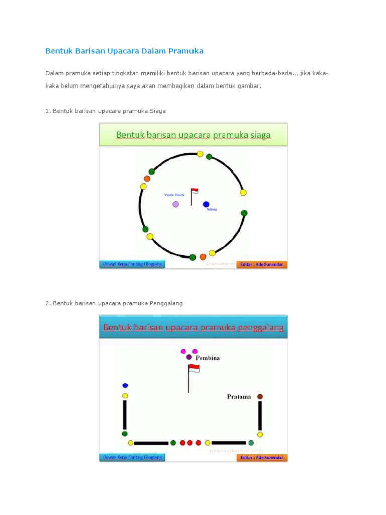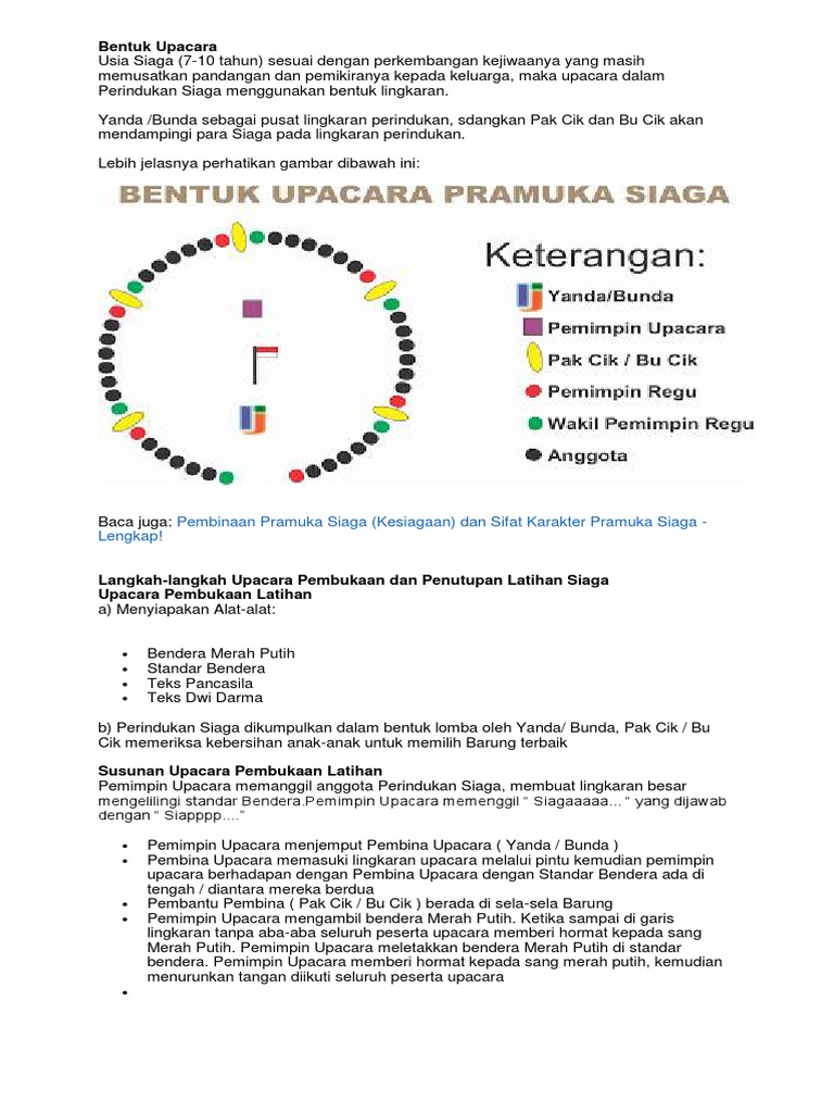 Posting pada sd sma smp ditag adat kabiasaan nyaeta alun alun adalah apa arti dari kata artefak apa arti dari kata kata artefak apa arti upacara adat apa yang dimaksud dengan budaya benda apa yang dimaksud upacara adat arti diarak arti kosakata alun alun bentuk bentuk tradisi bentuk tradisi budaya adalah budaya indonesia yang. Memang tidak sulit dalam mempelajari formasi baris berbaris ini bagi para pembina nya lho ya. Yanda bunda sebagai pusat lingkaran perindukan sdangkan pak cik dan bu cik akan mendampingi para siaga pada lingkaran perindukan. Pesta siaga adalah pertemuan untuk golongan pramuka siaga. Upacara pembukaan latihan dibubarkan oleh pratama. Masa menyiagakan masyarakat dalam menghadapi pemerintah kolonial belanda dalam merintis kemerdekaan yang ditandai dengan kebangkitan nasional 20 mei 1908.