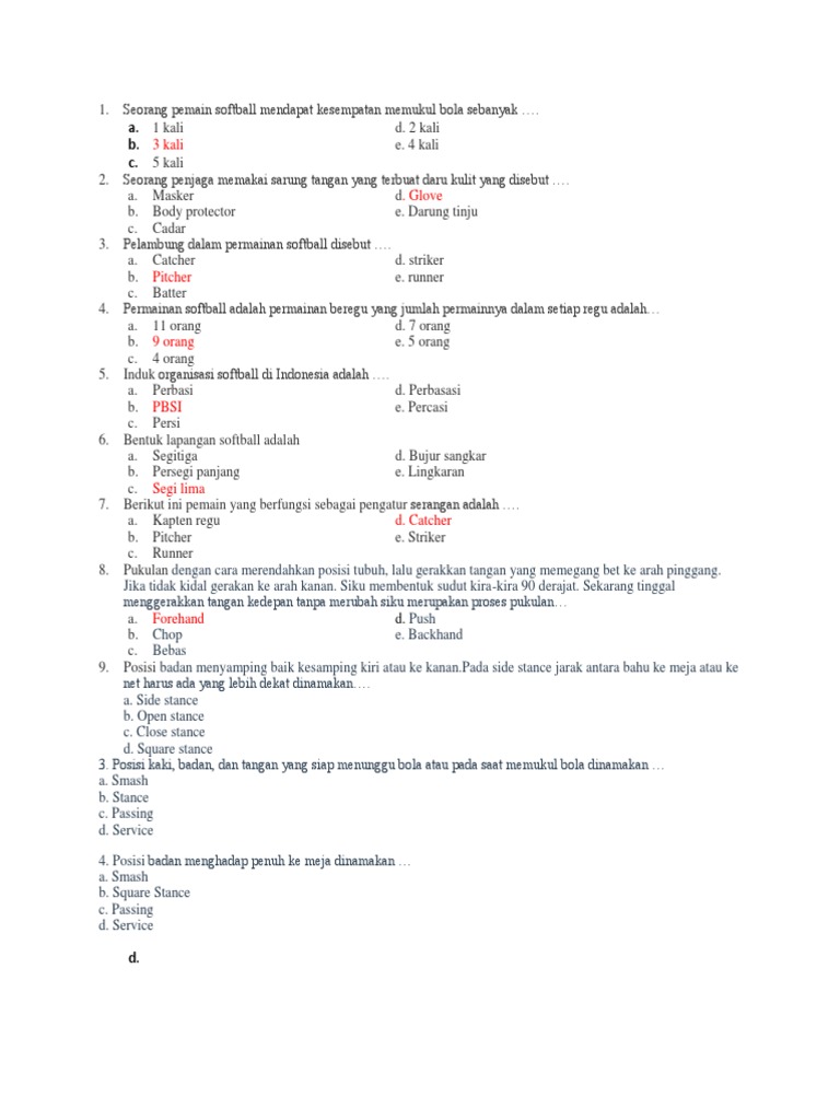 Permainan softball minimal membutuhkan satu sampai tujuh. Lapangan softball berbentuk bujur sangkar. Ukuran lapangan softball di atas merupakan standar nasional dan internasional untuk posisi permainan softball ini terdapat empat macam yaitu pelempar bola penangkap bola penjaga dan pemukul bola. Bentuk lapangan softball adalah. Sofbol atau dikenal dengan softball adalah olahraga bola beregu yang terdiri dari dua tim. Permainan sofbol lahir di amerika serikat diciptakan oleh george hancock di kota chicago pada tahun 1887sofbol merupakan perkembangan dari olahraga sejenis yaitu bisbol atau hardballbola sofbol dilempar oleh seorang pelempar bola pitcher dan menjadi sasaran pemain lawan yaitu pemukul bola dengan.