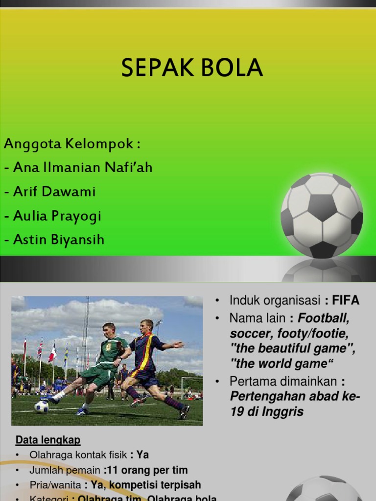 Secara umum pengertian sepak bola adalah suatu cabang olahraga yang menggunakan sebuah bola berbahan kulit karet dan dimainkan oleh dua tim dimana masing masing tim beranggotakan 11 pemain inti dan beberapa pemain pengganti. Agar bisa bermain sepak bola dengan baik kamu harus menguasai teknik dasar dalam permainan sepak bola. Berikut nama lain sepak bola adalah. Terjawab berikut nama lain sepak bola adalah aseccor bpelatih csepak bola dpelatih 1 lihat jawaban. Yaitu terdiri dari seorang kiper dan sepuluh orang pemain yang dibagi menjadi berbagai posisi di lapangan dan tentunya dengan tugasnya masing masing. Kiper penjaga gawang goal kiper.