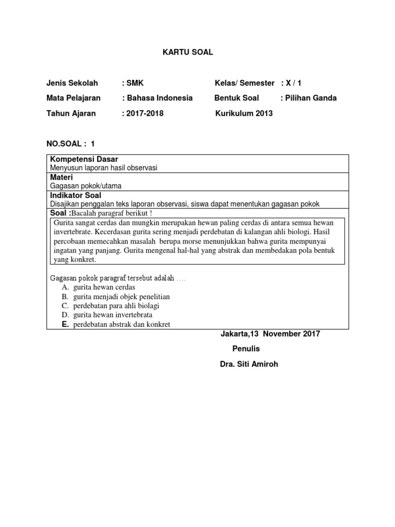 Hak kewajiban ayah ibu dan anak di rumah sekolah. Bersifat objektif berarti teks laporan tersebut harus faktual dan berpatokan pada informasi yang sah tentang apa yang benar benar terjadi. Pertumbuhan ekonomi indonesia terganggu karena menurunnya jumlah ekspor karet dan kopi yang merupakan penyumbang pertumbuhan produk domestik bruto nasional. Gagasan pokok dapat mudah ditemukan dengan menjawab pertanyaan paragraf tersebut membahas mengenai apa jawaban pertanyaan tersebut merupakan gagasan pokok. Wayang tersebut menggunakan bahan plastik berwarna sistem pencahayaan teater modern dan layar khusus. Simpulan adalah suatu pernyataan yang dibuat berdasarkan ide pokok dan kata kunci dari kalimat penjelas dengan kalimat sendiri.
