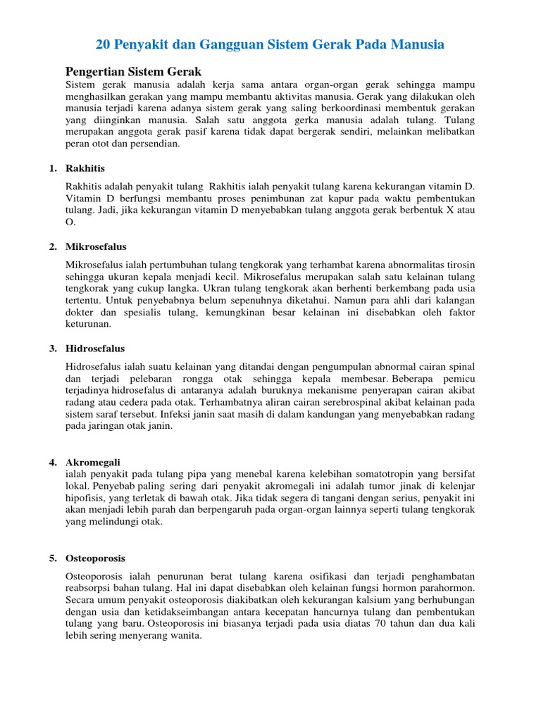 Berikut ini macam macam gangguan dan penyakit pada sistem saraf manusia. Ini mempengaruhi satu dari 15000 anak terutama dari keturunan eropa utara. Selain itu posisi tubuh yang keliru terkena penyakit mengalami kecelakaann juga bisa membuat tulang menjadi bermasalah. Darah mengandung zat cair dan zat padat. Untuk mengetahui apa saja kelainan pada tulang langsung simak beberapa penjelasan tentang kelainan pada tulang berikut ini. Blood disorder atau penyakit kelainan darah adalah gangguan yang terjadi pada salah satu atau beberapa bagian darah sehingga memengaruhi jumlah dan fungsinyakelainan darah bisa bersifat akut maupun kronis.