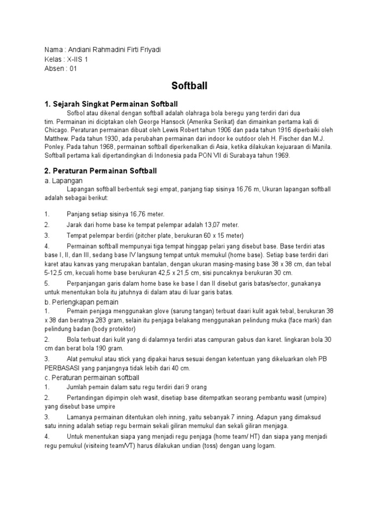 Softball Pengertian Peralatan Sistem Teknik Peraturan