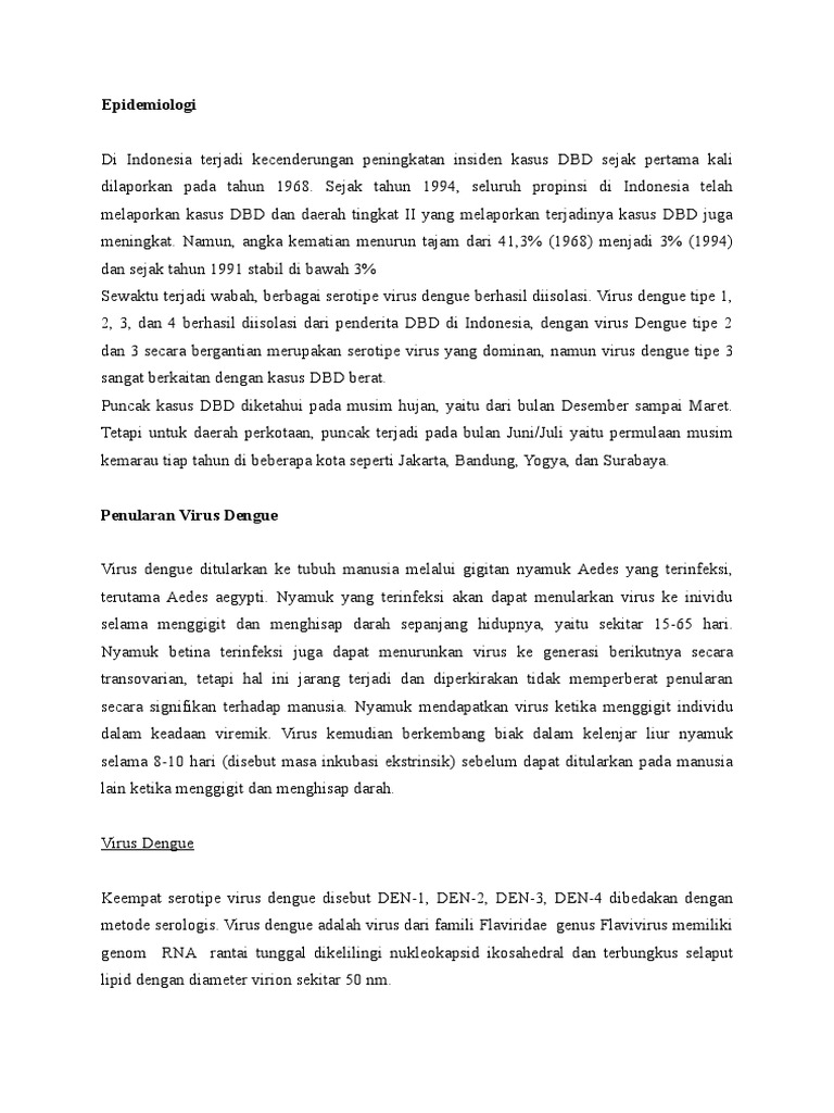 Virus dengue merupakan virus rna yang termasuk ke dalam famili flaviviridae genus flavivirus dan ada 4 serotipe yang berbeda yaitu den1 den 2 den 3 dan den 4. Demam berdarah dengue dbd atau dengue hemorrhagic fever dhf disebabkan oleh infeksi virus dengue.