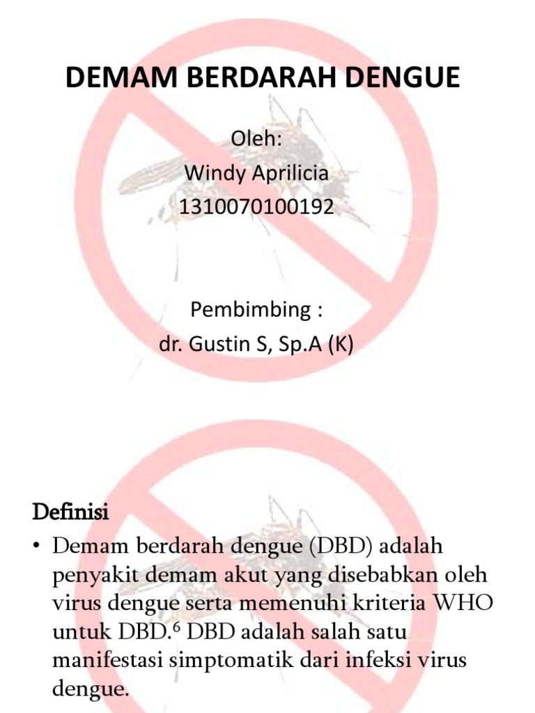 Jika soal tentang penyakit menular sebelumnya hanya terdiri dari 1 jenis soal yaitu soal pilihan ganda pilgan nah dalam soal yang kami bagikan ini terdiri dari dua jenis soal yaitu soal pilihan ganda dan soal essay uraian. Sebaiknya dilakukan pemeriksaan serologi untuk memperkuat diagnosis demam berdarah dengue. Igm akan tidak terdeteksi 30 90 hari setelah infeksi sedangkan igg dapat tetap terdeteksi seumur hidup. Menjadi hal yang sangat penting untuk membedakan infeksi primer dan sekunder karena dapat digunakan untuk tindak lanjut penanganan penderita secara dini serta untuk prognosis dbddss. Hal ini dipikirkan karena adanya perdarahan spontan yang terlihat dari adanya ptekie adanya perdarahan gusi. Demam dengue merupakan penyakit infeksi virus yang paling cepat penyebarannya di dunia.