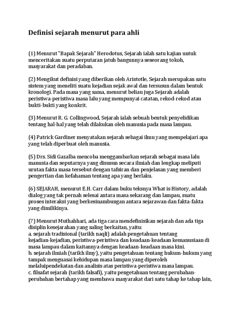 Pengertian sejarah menurut para ahli. Pengertian sejarah menurut herodotus dan para ahli oleh azqiara diposting pada september 14 2019 september 14 2019 sejarah adalah sebuah topik yang sudah tidak lagi asing di telinga kita. Seperti kata sang proklamator bung karno jangan pernah melupakan sejarah ini akan membuat dan mengubah siapa kita. Sebagai manusia tentu saja kita harus belajar dari sejarah karna ada banyak hal kejadian di masa lampau yang bisa kita jadikan sebagai referensi agar kita semua menjadi lebih baik di. Makasih ada tugas kimia. Berikut merupakan pengertian sejarah menurut para ahli baik ahli dalam negeri maupun ahli dari luar negeri termasuk sejarawan di masa lalu. Pengertian sejarah menurut para ahli kita semua tahu bahwa sejarah memang sangat penting bagi suatu bangsa.