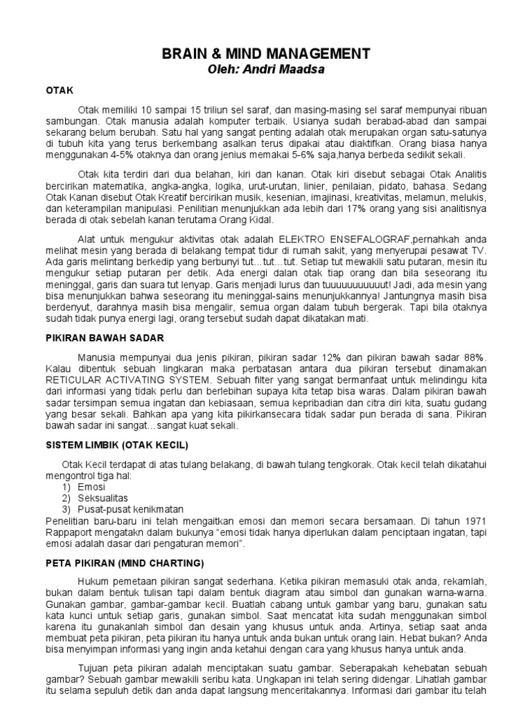 Peta pikiran disebut juga. Terlepas dari adanya risiko bahwa pemikiran tersebut memunculkan perbedaan dan memicu konflik namun perbedaan tersebut sebenarnya mampu dielaborasi. Peta pikiran juga berguna untuk. Peta minda atau sering disebut juga sebagai mind mapping pertama kali dikembangkan oleh seorang psikolog yang berasal dari inggris yang bernama tony buzan. Salah satu metode pembelajaran yang telah terbukti mampu mengoptimalkan hasil belajar adalah metode peta pikiran atau disebut mind mapping. Peta pikiran lebih kompak dari catatan konvensional sering mengambil satu sisi kertas. Upaya tony buzan sebenarnya muncul dari pengamatannya dalam bidang perkembangan teknologi komputer.