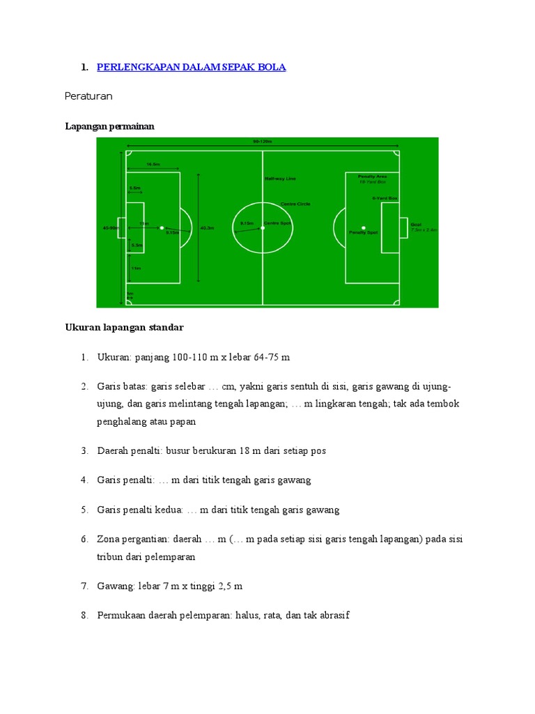 Nah untuk lebih detail lagi silahkan bisa baca tentang teknik sepak bola atau ukuran gawang sepak bola dimana. Demikianlah pembahasan mengenai sepak bola sejarah teknik peraturan ukuran lapangan bola wasit dan sepatu semoga dengan adanya ulasan tersebut dapat menambah wawasan dan pengetahuan anda semua terima kasih banyak atas kunjungannya. Artinya ukjuran lebar lapangan sepak bola tidak boleh di bawah 45 meter dan tidak boleh juga lebih dari 90 meter. Berikut ini penjelasan lengkapnya. Berikut adalah info ukuran lapangan sepak bola lengkap meliputi ukuran panjang dan lebar lapangan sepak bola ukuran panjang dan lebar tiang gawang ukuran kotak penalti dan titik tengah lapangan sepak bola dalam standar internasional. Terkait dengan ukuran lapangan sepak bola lapangan ini memiliki ukuran panjang dan lebar.