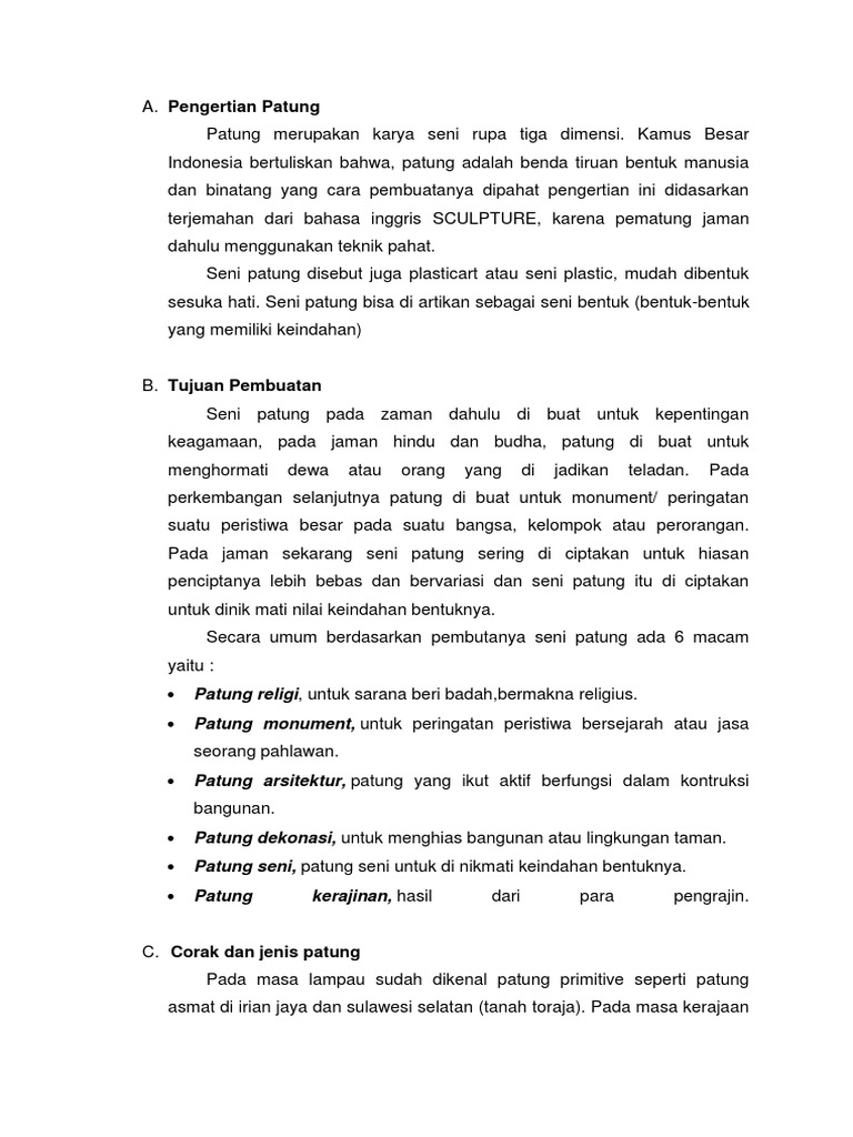 Alat butsir sedangkan pada teknik 2 adalah teknik memahat berbeda dengan teknik membutsir yang dapat dilakukan dengan memijit menambah dan mengurangi dalam teknik memahat hanya dapat dilakukan pengurangan. Teknik cetak atau cor yaitu teknik membuat patung dengan cara memenaskan bahan dasar patung yaitu logam hingga mencair lalu dituangkan dalam cetakan patung yang telah dibentuk rupa patungnya. Teknik butsir adalah cara membuat patung dengan bahan bahan yang lunak seperti tanah liat gypsum atau lilin. Teknik membentuk adalah teknik dalam membuat patung dengan cara membentuk patung secara bertahap sehingga tercipta patung yang kita inginkan. Teknik membentuk yaitu teknik membuat patung dengan cara membentuk patung secara bertahap sehingga tercipta patung yang diinginkan. Teknik membutsir yaitu membuat patung dengan cara memijit menambah dan mengurangi bahan yang dibentuk dengan dibantu alat butsir.