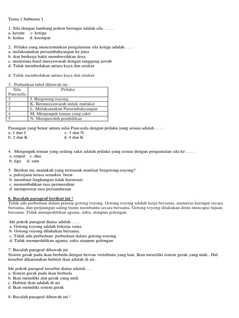 Soal Kelas 6 Tema 1 Subtema 3 Dan Kunci Jawaban Osnipa