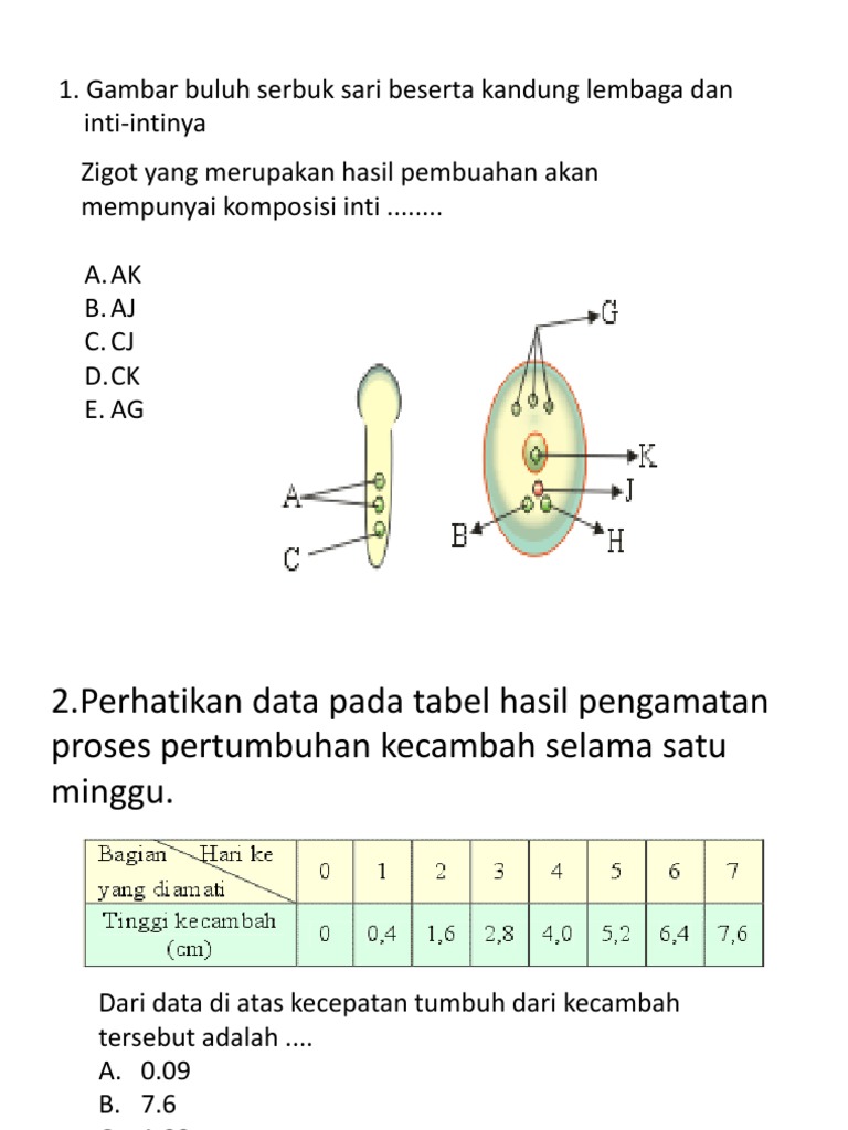 Zigot adalah proses reproduksi di depan janin atau janin embrio potensial dalam rahim wanita. Endosperma akan digunakan sebagai sumber makanan pertama pada proses perkecambahan biji. Blastulasi adalah proses yang menghasilkan blastula yaitu campuran sel sel blastoderm yang membentuk rongga penuh cairan sebagai blastocoel. Pertumbuhan adalah pertambahan jumlah sel pada suatu organisme.